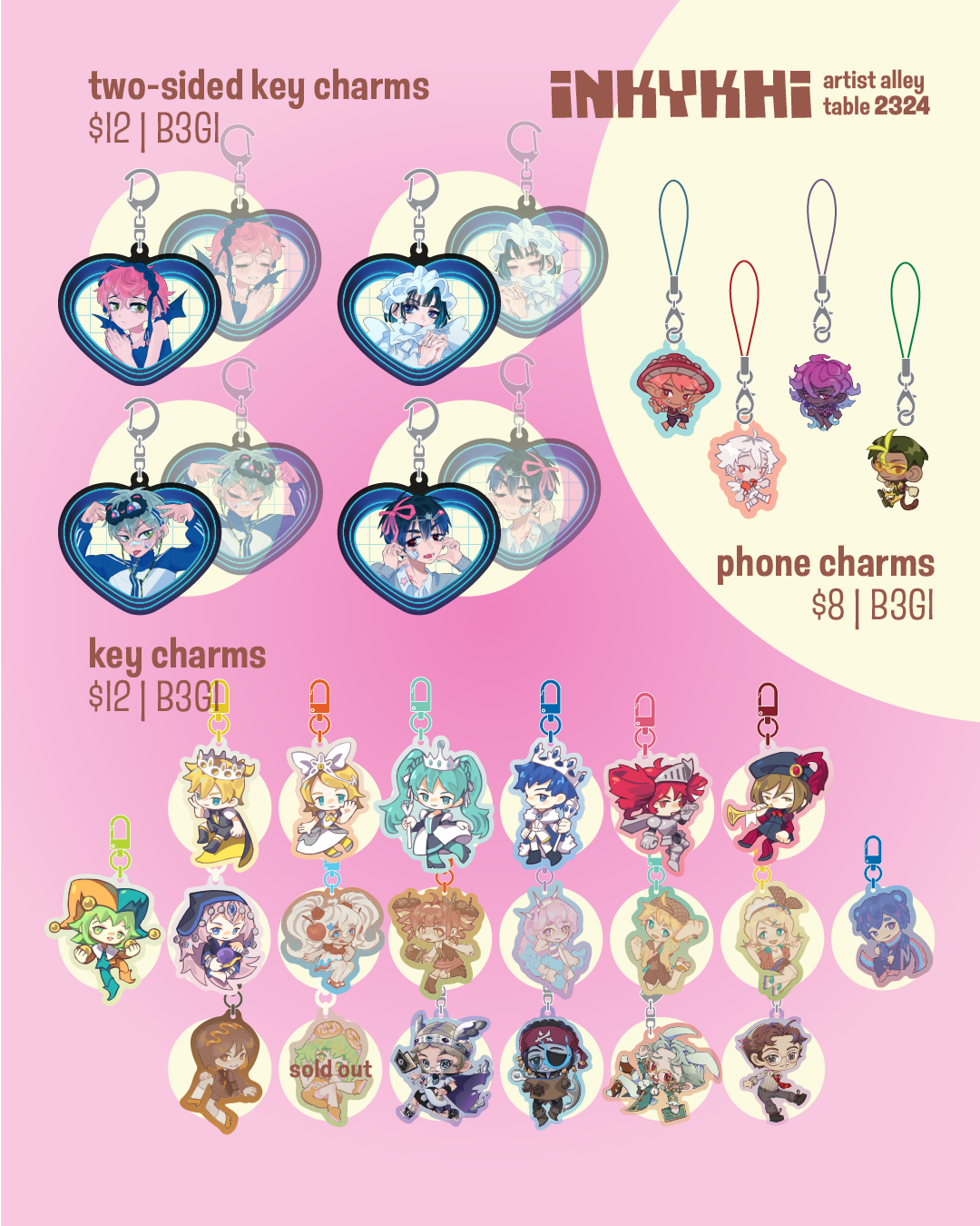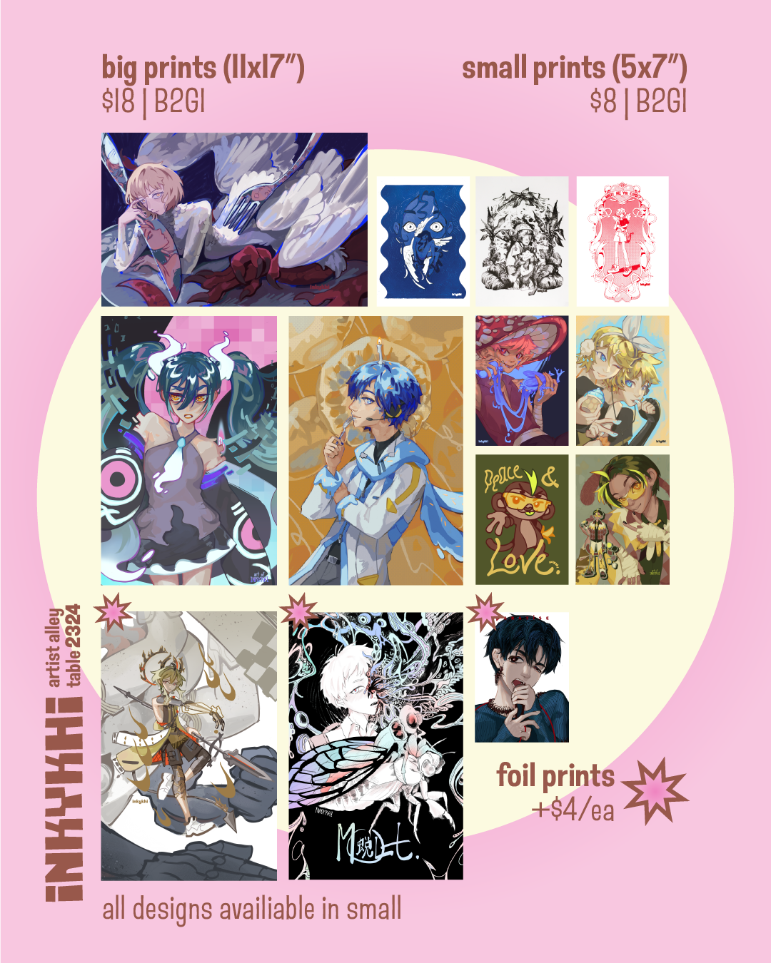 Hallo! I create original and fanworks to sell as keychains, stickers, and prints. I love printmaking and sell my hand-made lithography and serigraphy works exclusively at events. Thanks for taking a peek!